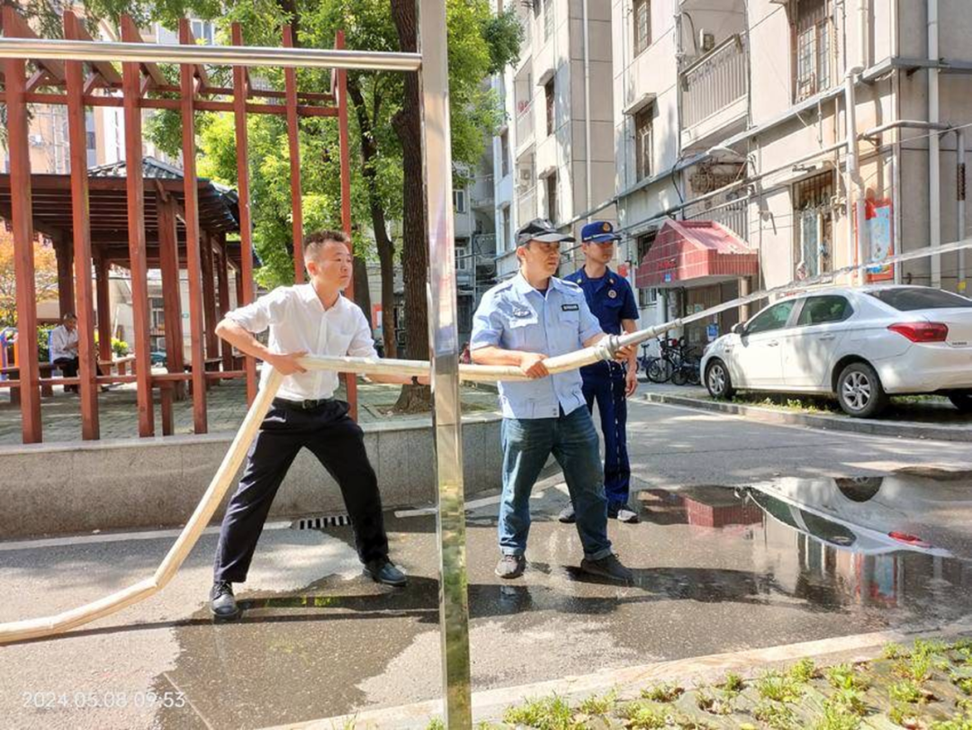 ▲ 5月10日,六角亭街道在游艺西村小广场开展了消防安全及防灾知识培训和演练。