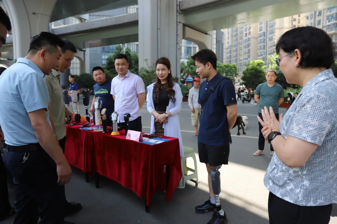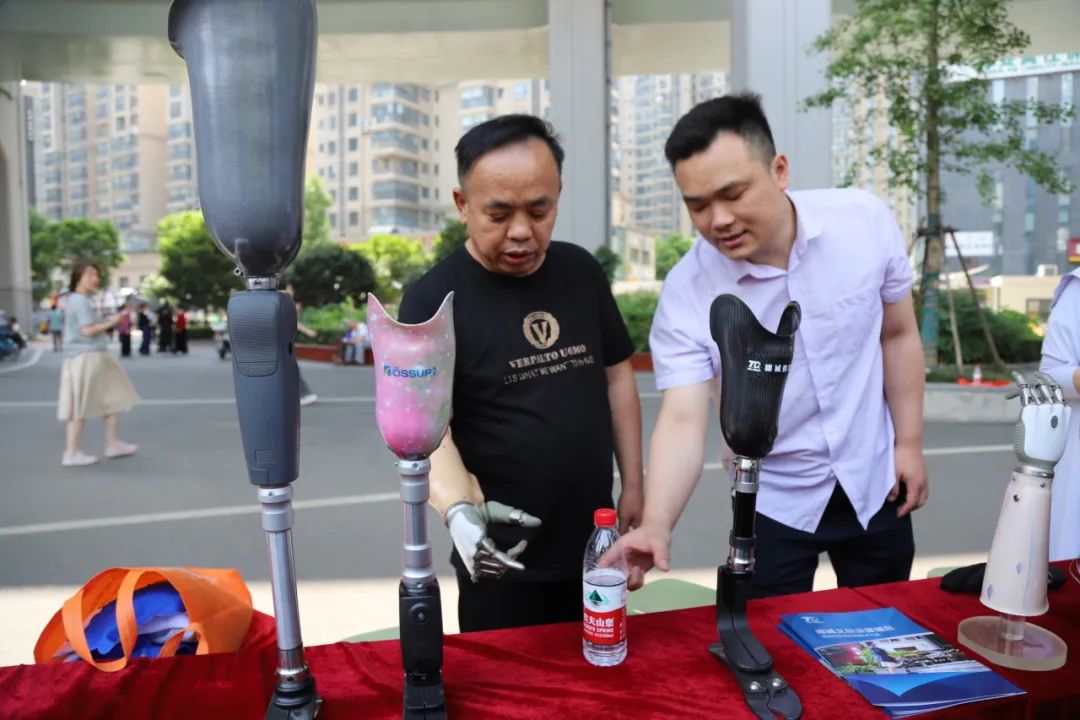 现场的助残服务丰富多彩。武汉市第四医院的专家团队开展健康义诊,为社区居民和残疾人朋友提供测量血压、血糖、问诊等服务。