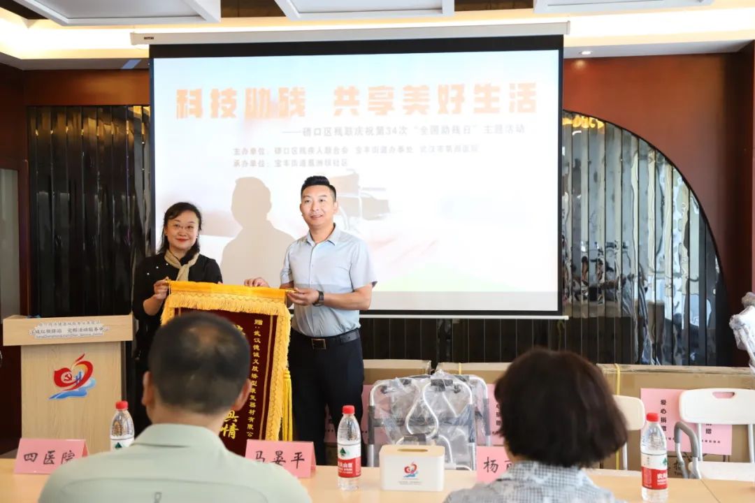活动现场,武汉德诚义肢矫形康复器材有限公司为葛洲坝社区捐赠轮椅、助行器、沐浴椅等残疾人辅助器具,助力社区老人和残疾人生活出行便利。