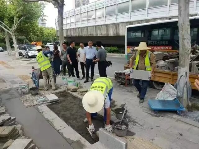 ▲ 相关职能部门和街道现场了解盲道清障维修情况