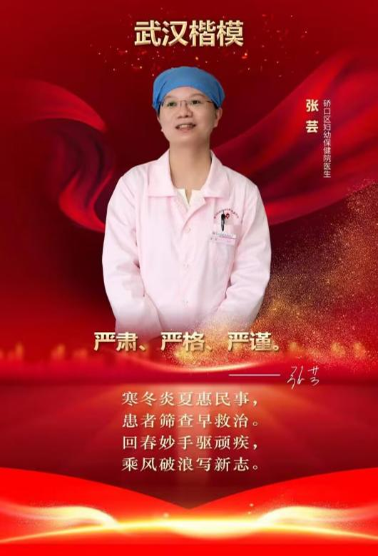 张芸带领团队将中医药适宜技术运用到妇幼保健工作中,利用人工智能技术进行快速筛查识别,并积极推广相关科研成果和经验。在硚口区卫健局党委的领导下,医院结合行业特点,融入“实干、奉献、创新、奋进”的妇幼文化,涌现出以张芸为代表的一批先进个人和团队。