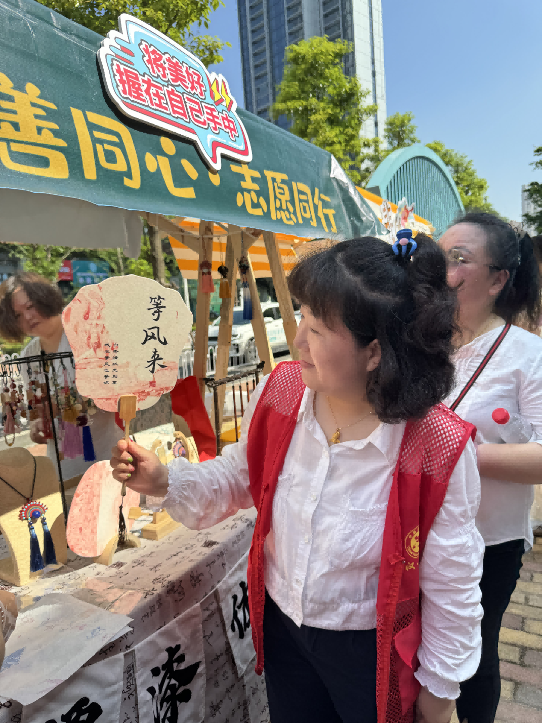 公益集市人气爆棚,非遗体验、便民义诊、法律咨询等多个服务摊位依次排开,吸引了不少现场居民和直播间的观众前来打卡赶集。