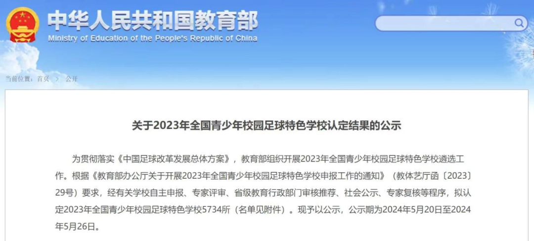 近日,教育部发布《关于2023年全国青少年校园足球特色学校认定结果的公示》,拟认定2023年全国青少年校园足球特色学校5734所。其中,硚口区2家学校上榜。