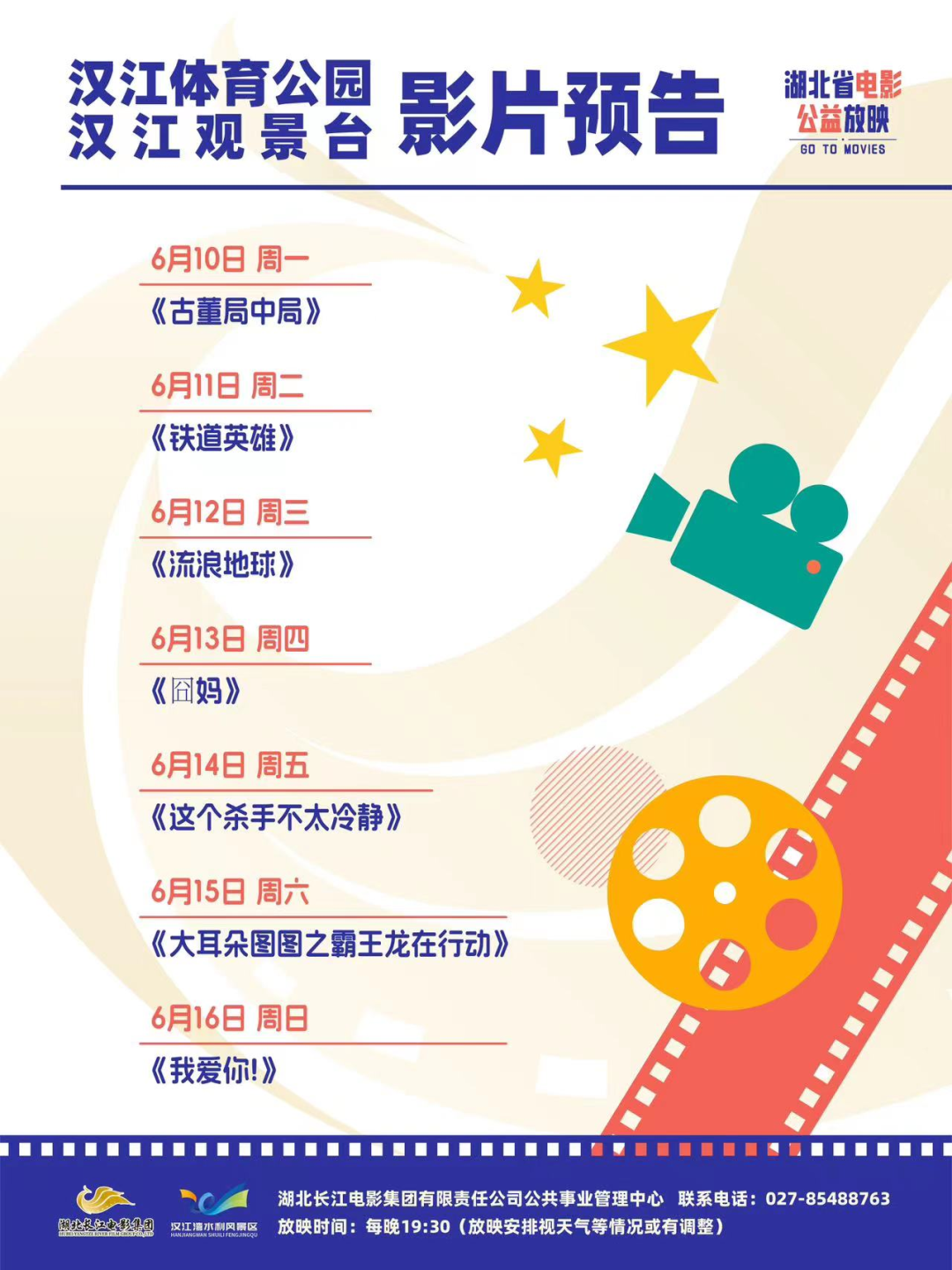 端午到 “粽”香飘! 在这个浓情的端午佳节 硚小布又带着快乐来“续约”啦! 和家人好友一起来到汉江边 硚口请你免费看电影! 本周露天电影片单上新,《古董局中局》《铁道英雄》《流浪地球》等精彩影片将在汉江湾观景平台、汉江湾桥桥墩放映,每晚19:30,记得来看哦~ 吹着凉爽的江风,看一场自带江景的电影 硚口邀您“粽”享光影好时光! 观影地址 1.古田四路汉江湾桥下七巧广场 由四明闸口进入 2.古田一路汉江湾观景平台 由汉江雅苑旁上堤路进入 7 > 查看全文