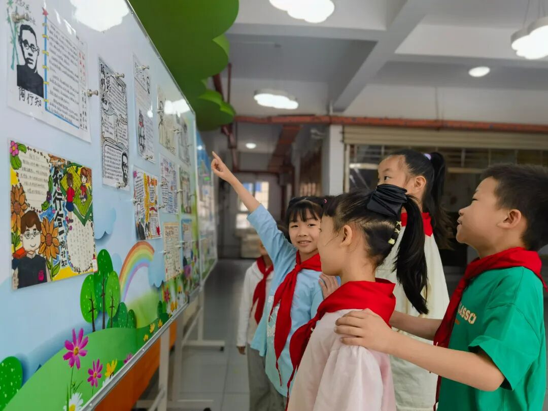 “看!这是我画的‘四颗糖的故事’。我还会讲呢!”下课铃声响起,孩子们就聚集在行知文化廊,叽叽喳喳讨论着,津津有味地看着,眼睛里满是对行知文化的崇敬。