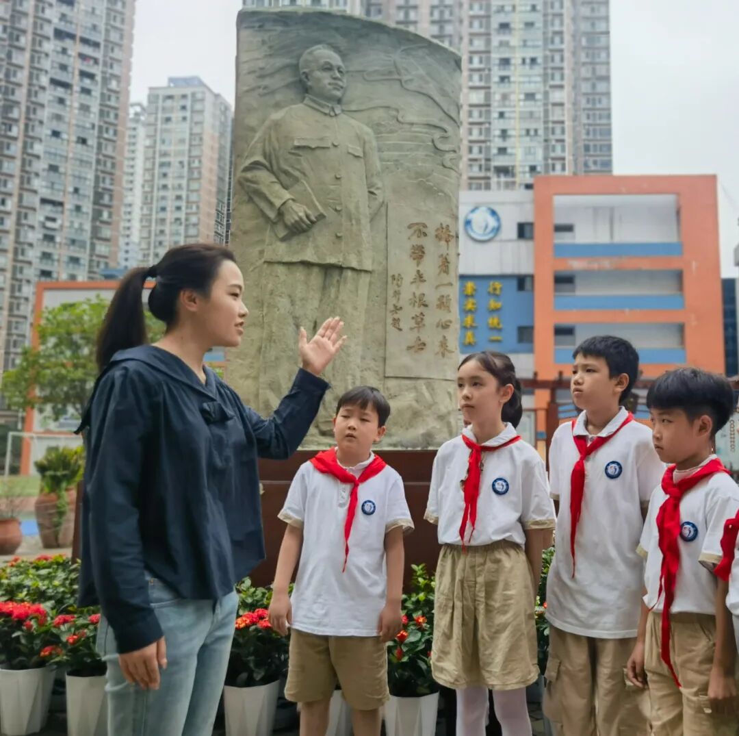 一直以来,行知小学着力挖掘行知文化育人价值,研发了“入学知校史”“游陶园明目标”“争做好习惯小先生”等系列“行知第一课”。一年级学生入学第一周,“行知小先生团”的成员带领他们参观陶园、行知名言廊,为他们宣讲校史,了解学校名人录,知晓陶行知,在“陶园”成长栏写下自己“要成为怎样的小先生”。