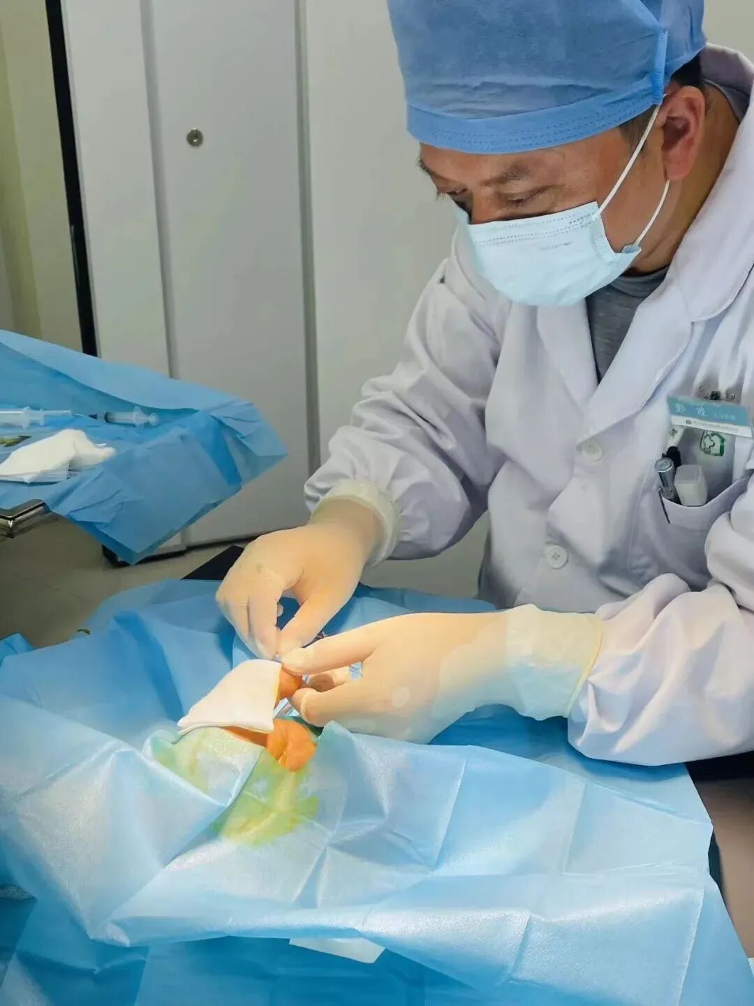 彭波详细询问了病情,查看了耳朵的情况,了解相关病史,发现耳钉上的钉扣已“陷”耳垂几月有余,只隐约露出一丝金黄色,左右两侧耳朵都是这样的情况。目前来看,普通方法无法取出。彭波安慰母女二人,这个耳钉扣可以取出来,需要打麻药后再操作,只是一个小手术,不用担心。母女俩终于放下了那颗悬着的心。彭波和母女谈了手术过程和要注意事项后,就安排老人家进了手术室,十分钟左右就将老人家的左右耳朵里面的钉扣取了出来。老人家的嘴角露出了开心的笑容,连连说:“社区医院都能为我们解决很多问题,以后有问题都要来社区医院!”