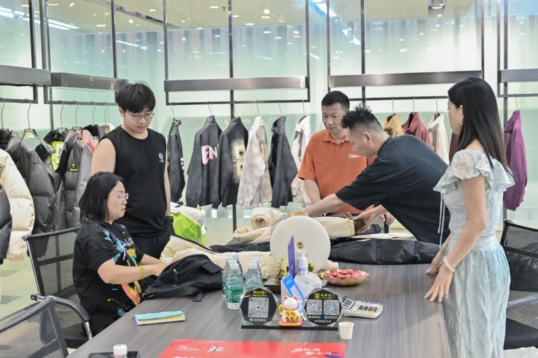 “和其他店铺的‘打法’不同,这次对接会我们只卖羽绒马甲,到7月下旬再组织客户订潮牌羽绒。”尚镜品牌主理人徐艳霞对自己的产品很有信心。她告诉记者,店铺一直坚持原创,今年已开发七十余个秋冬新款羽绒服,款式数量较往年翻了一番。“我们每年在设计上的投入达百万元,今年羽绒服主要运用了印染、刺绣、激光等工艺,颜色也根据客户需求进行定制,订的较多的除了黑白灰外,还有宝石蓝和深红色。”