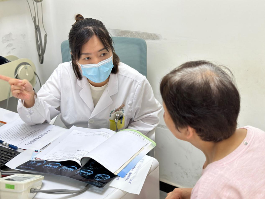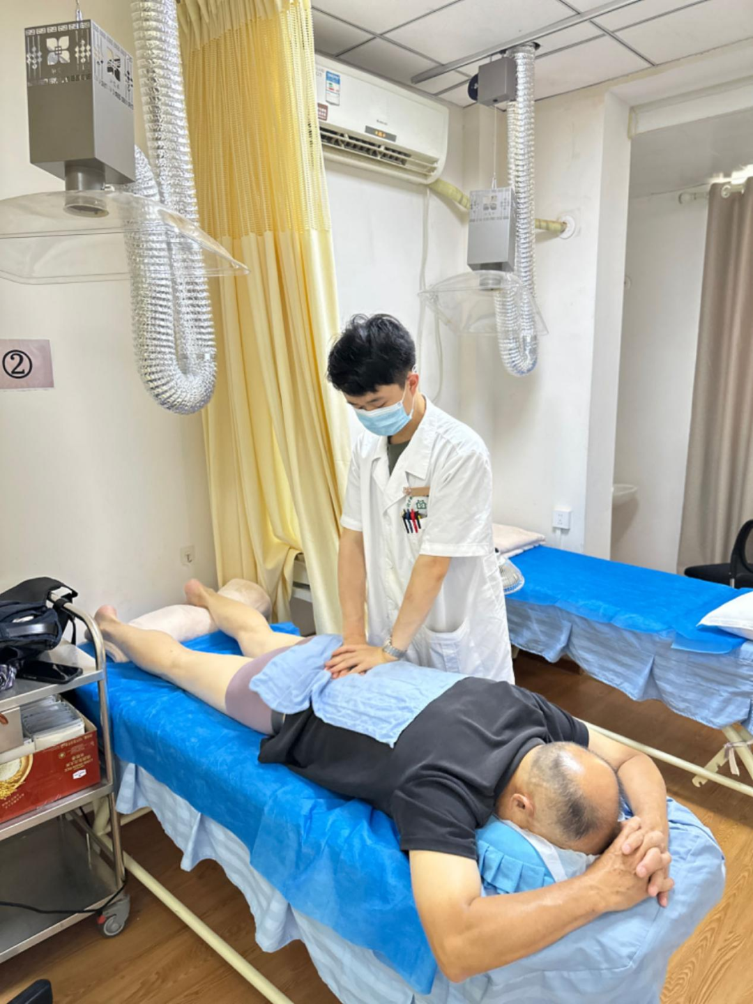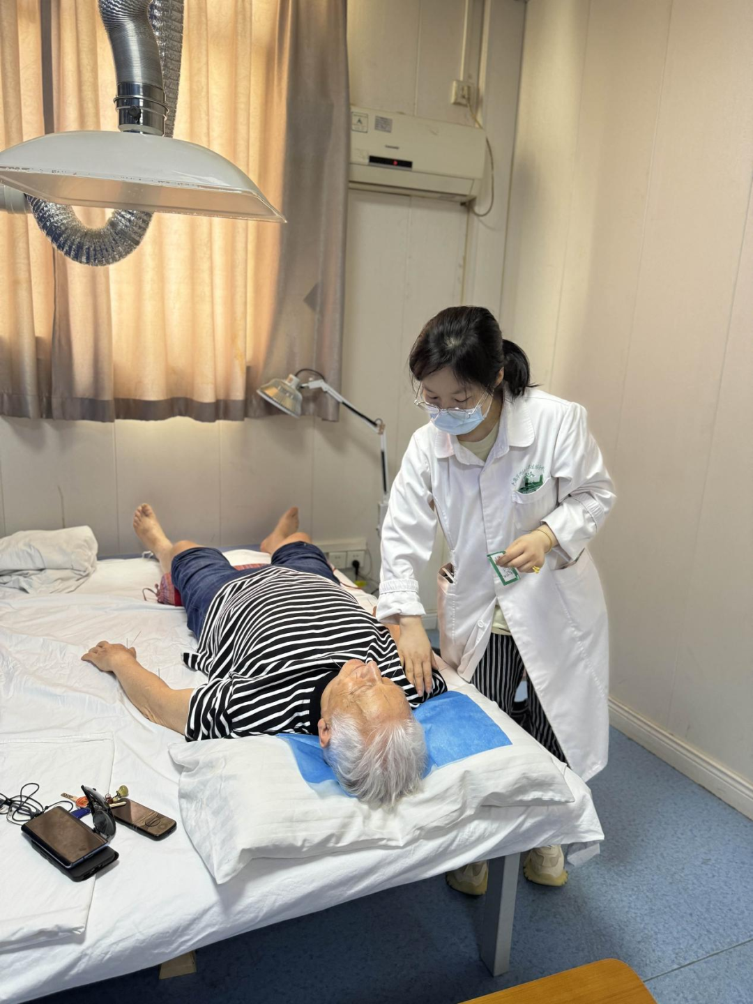 ▲ 六角亭社区卫生服务中心医生高夏梦为姬先生做治疗