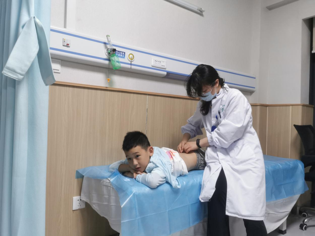 ▲ 古田社区卫生服务中心医生为小朋友捏脊