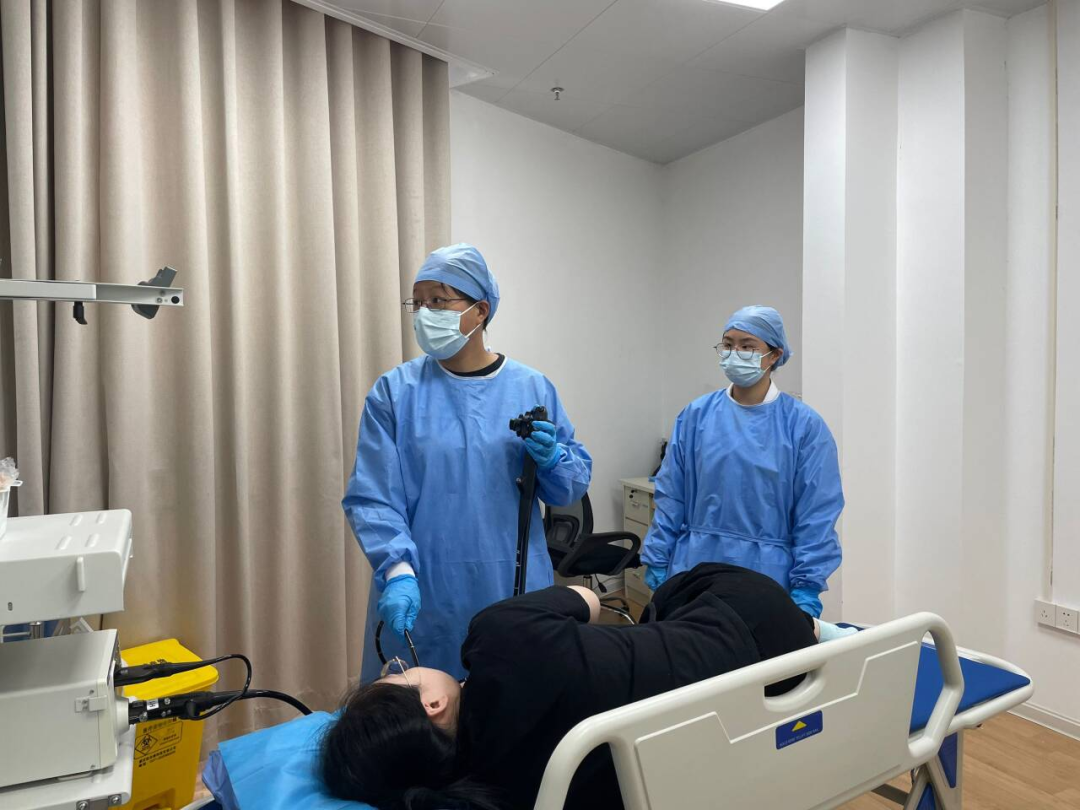 ▲ 韩家墩街社区卫生服务中心为患者做胃肠镜检查
