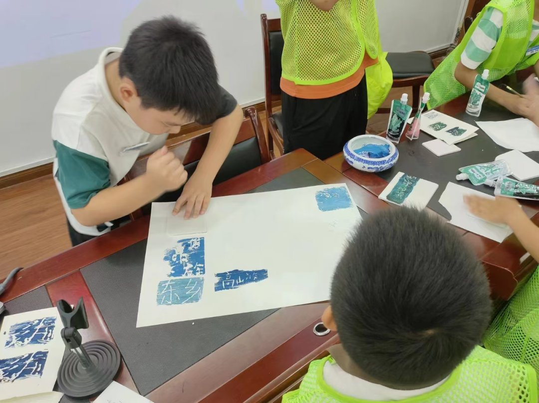 7月10日,硚口区六角亭街道学堂社区组织的“暑假学堂”爱心托管班举办民族团结手工拓版画活动。