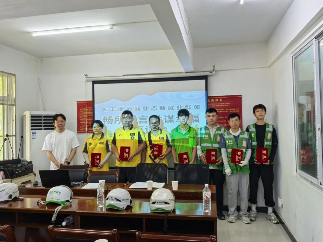 新业态新就业群体长年走街串巷,熟悉地情人情,在参与基层治理中独具优势,为充分发挥职业优势,会上开展“我为基层治理献一策”活动,鼓励各位“移动网格员”为长丰发展献计献策。长丰街道以党建抓凝聚、以凝聚促治理,让治理对象变为治理力量,让“移动网格员”成为信息员、线索排查的侦探员、政策方针的宣传员、公共文明的引导员、为民服务的解难员、事件处置的监督员,为构建基层共建共治共享社会治理新格局注入新活力。会上还组建了骑手志愿服务队,积极探索开展社区巡逻“随手拍”、楼道垃圾“随手清”、共享单车“随手整”、安全隐患“随手报”、文明礼仪“随手宣”等“随手服务”。