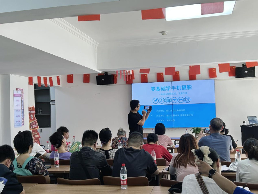 在汉中街道长寿社区举办的丝巾雅集活动和荣华街道荣西社区举办的手机摄影讲座,丰富了社区居民的文化生活,提升了生活品味。矿物奇遇记走进恒隆广场,带领小朋友识矿物、做手串、长知识,在欢声笑语中增长科学文化知识。同时,八一前夕,硚口区图书馆还走进易家街道武警某中队开展“书香进军营·双拥鱼水情”活动,丰富官兵文化生活。