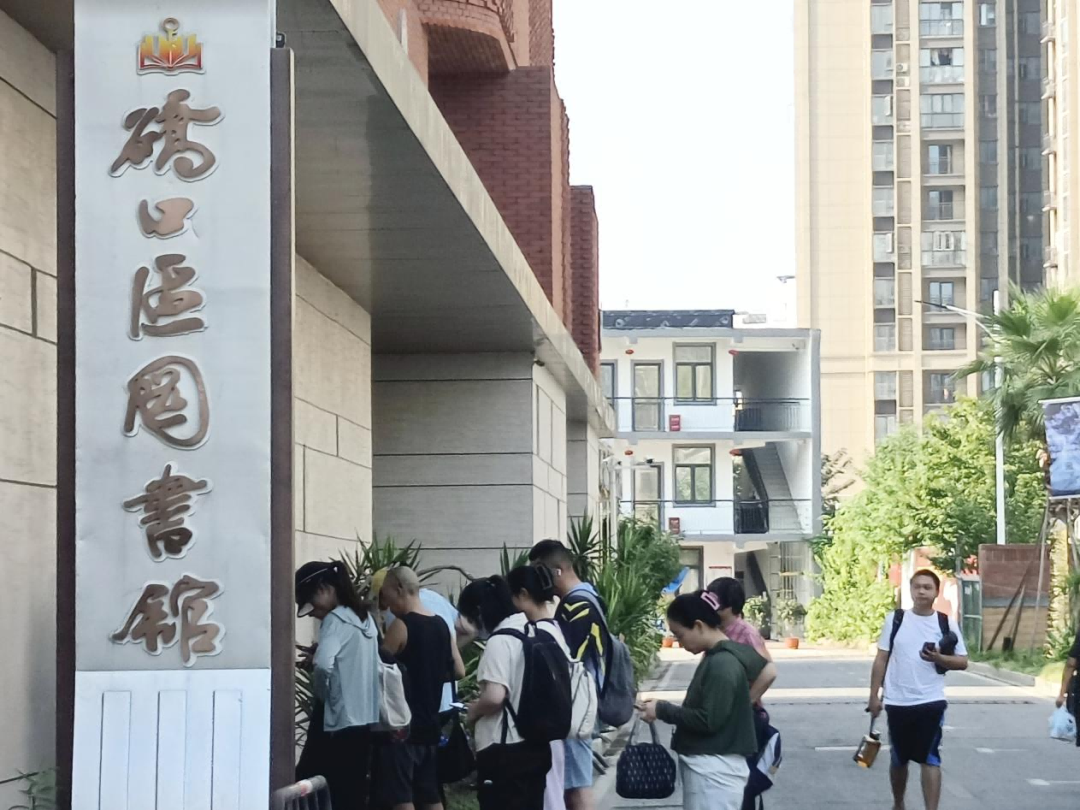 此外,这里文化氛围也十分浓郁,暑假期间,硚口区掀起一股“读书热”,络绎不绝的读者来到位于德必·古田坊的硚口区图书馆打卡。炎热的天气,也挡不住大家对学习的热爱、对知识的渴望。