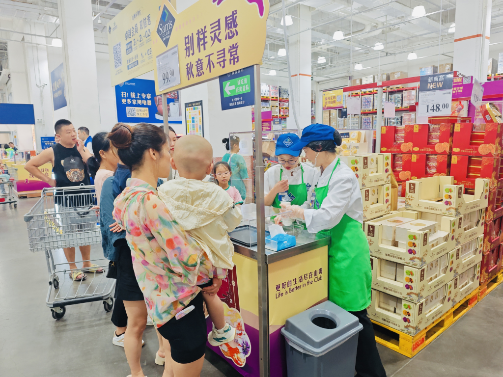 位于硚口的山姆会员店,十多种口味的月饼排满展台,顾客们抱着月饼大礼盒,挑得不亦乐乎。山姆的月饼们为了被吃掉,真的有在努力变优秀!