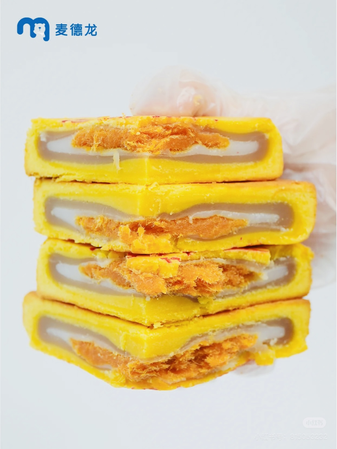 外皮糯糯的,薄薄的浓滑奶黄夹着甘沙咸蛋黄,满满流心,色泽金黄~入口有蛋黄香,椰香,浓郁顺滑!最佳吃法是微波炉加热10秒,奶黄会流出来~