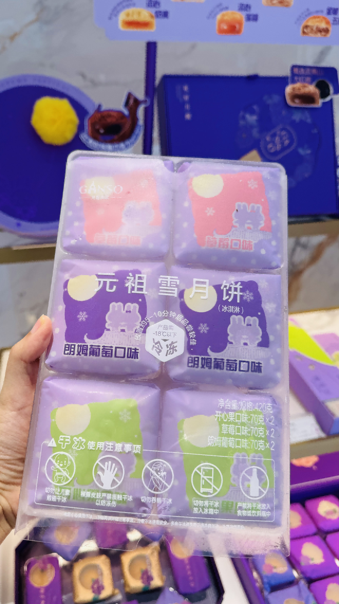 元祖在中秋前夕重磅推出了大家心心念念的“雪系列”月饼。走进今天五月在宗关山姆对面新开的元祖食品店内发现,店内陈列着苏式、台式、广式等月饼种类,其中最引人注目的当属元祖的顶流产品——雪月饼。