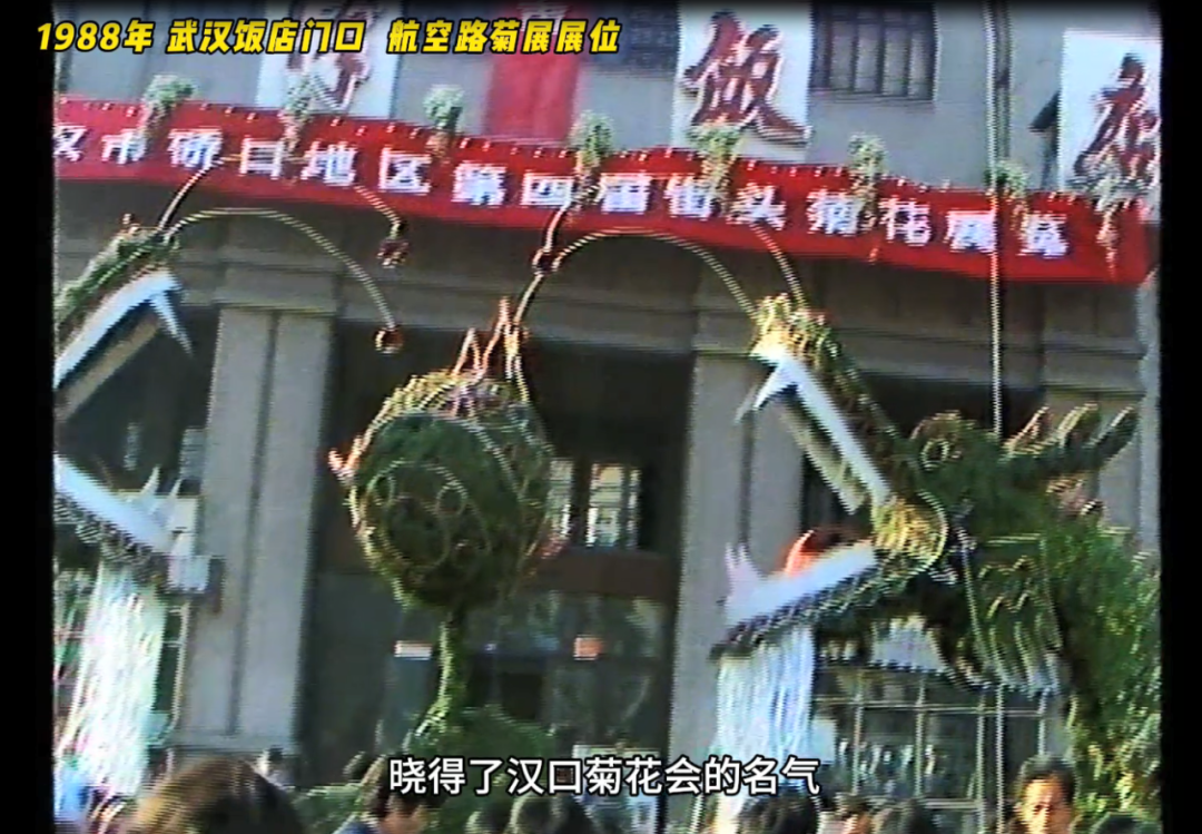 这条视频中的画面,对应的就是位于武汉饭店门口的航空路展位。菊展结束后经过评比,航空路展位名列第一,阅马场展位和滨江公园展位分别获得第二、和第三名。
