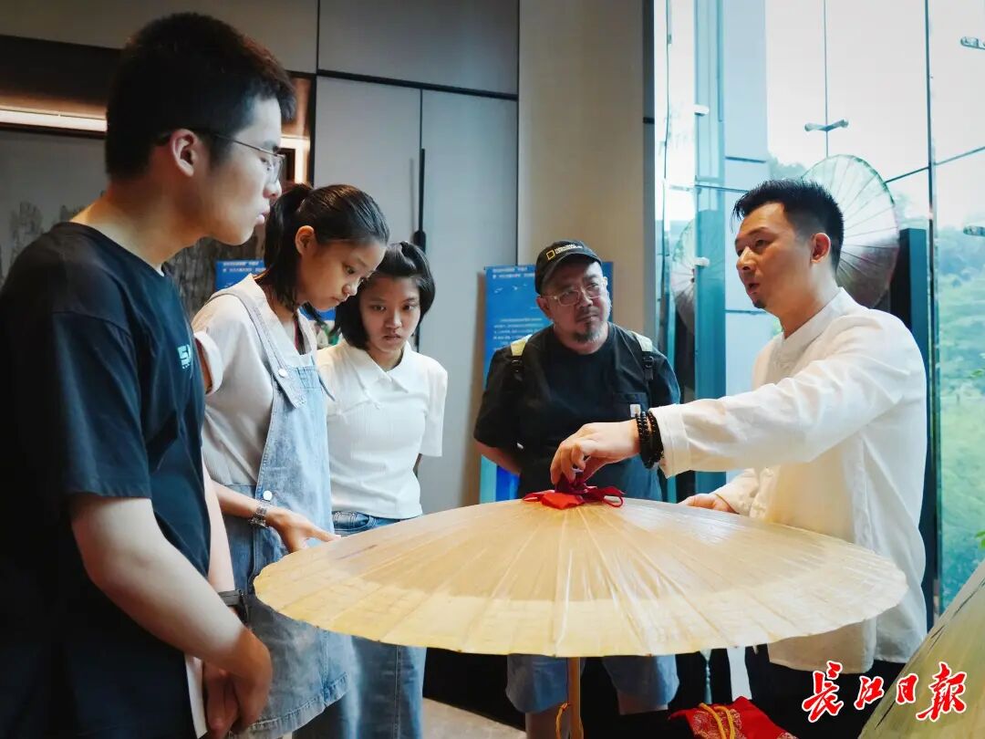 2023年底,区非物质文化遗产展示中心焕新开放,并将武汉木雕船模、苏恒泰油纸伞制作技艺和叶画三个大师工作室落户其中,为老百姓打开一扇走近非遗的“窗口”。连续两年,硚口区创新举办“非遗环硚旅行”等非遗宣传展示活动,以巡游打卡形式,以更接地气的方式让游客“遗”见倾心。
