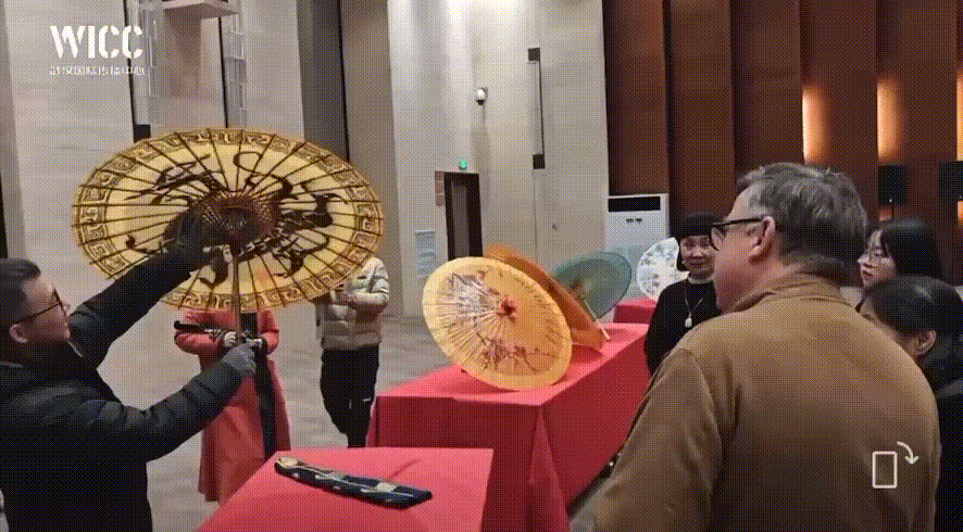 ◎2024年3月,苏恒泰油纸伞制作技艺、叶画受邀参加武汉市外办举办的驻汉领事官员“驻在湖北”传统文化体验活动,四国驻汉领事官员来硚参观,点赞硚口“非遗”文化。