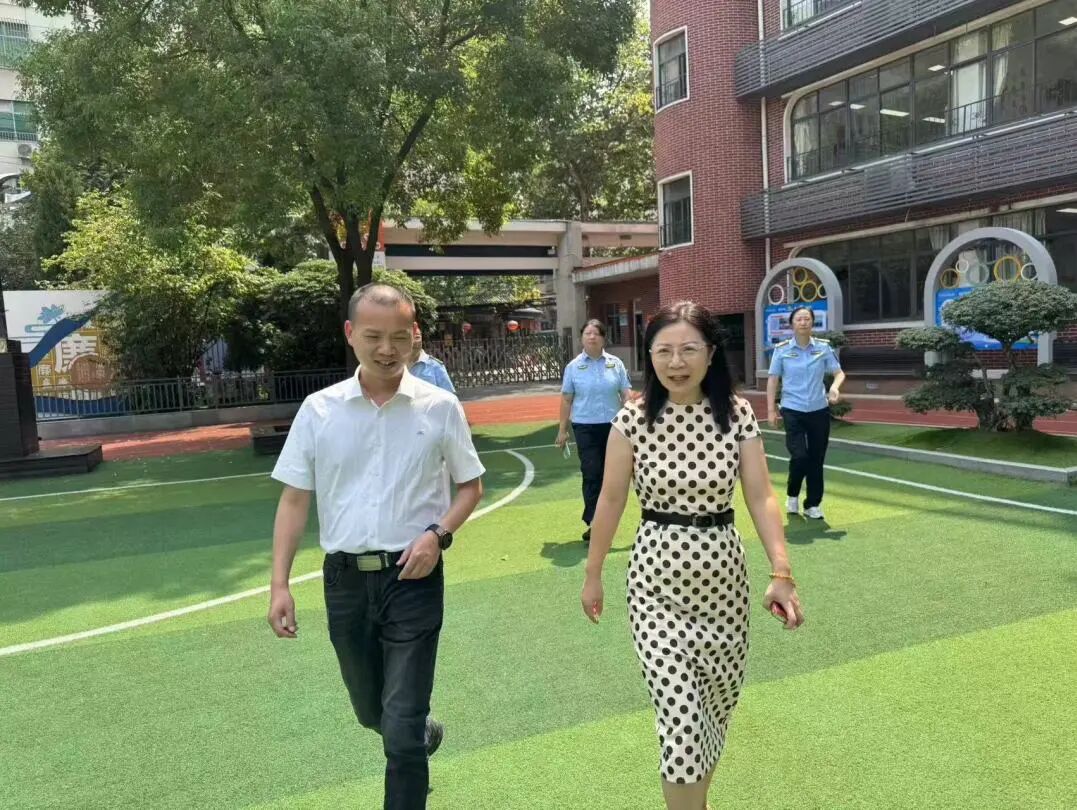 ▲区教育局主要负责人到十一实验学校检查开学准备工作