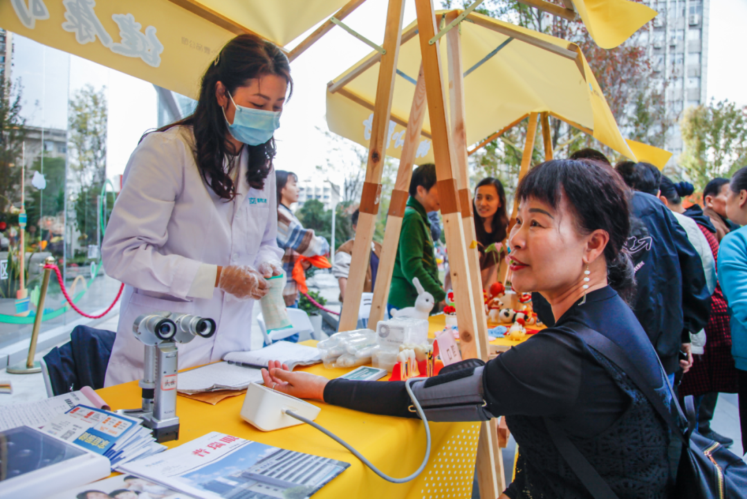 公益市集人气爆棚,市集上有土特产展销、手工艺品售卖、书法展示、慈善超市宣传、反诈宣传、免费电器维修等摊位,同时还为现场居民开展了义务缝纫、爱心理发、口腔眼科义诊等便民服务。