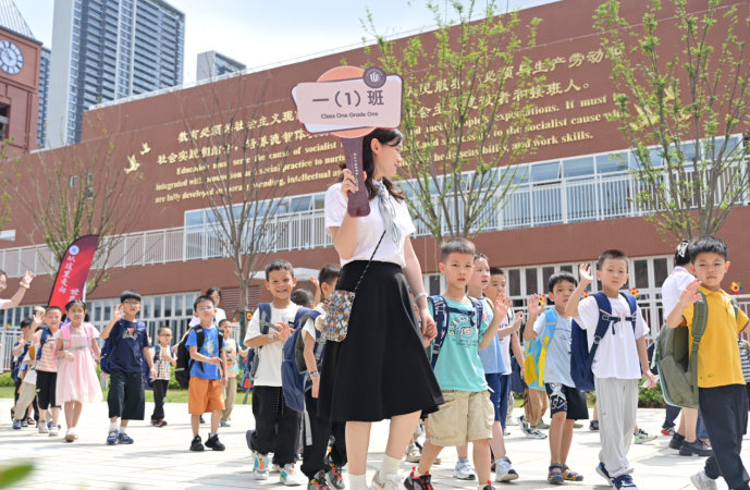 行知小学一年级新生的“行知第一课”入学礼温馨启幕,在师长的指引下开启校园初体验,从此与行知结缘。