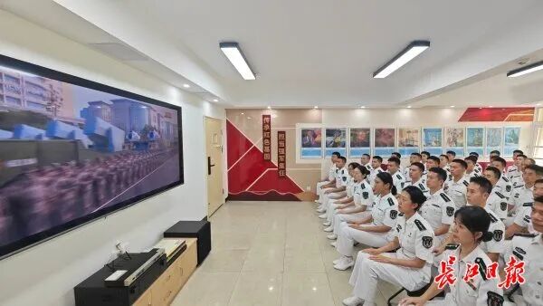 海军工程大学全校官兵收看九三阅兵直播。学员们观看阅兵后表示收看阅兵心潮澎湃,无比震撼,更加坚定了自己献身国防的决心。