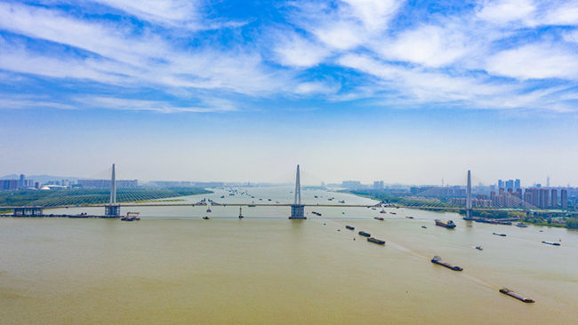 2020年6月28日,随着中交二航局建设者将最后一盘粗骨料活性粉末混凝土缓缓浇入横向湿接缝中,世界首座轻型钢混结构斜拉桥——南京长江第五大桥跨江主桥顺利合龙。南京长江第五大桥全长约10.33公里,为中央双索面三塔组合梁斜拉桥,跨江大桥长约4.134公里,主桥两个主跨均为600米,总跨径1796米,设计为双向六车道一级公路,时速100公里。专家称,这是世界第一座真正意义上的钢混组合结构大跨径桥梁。