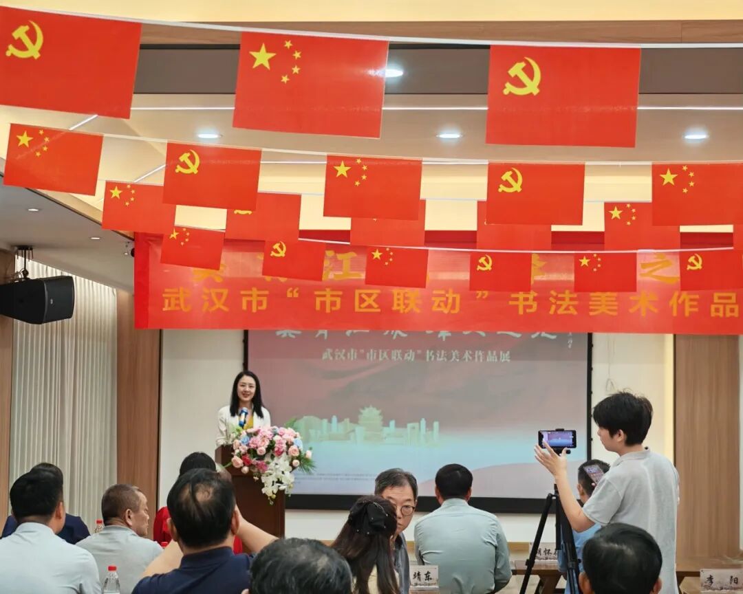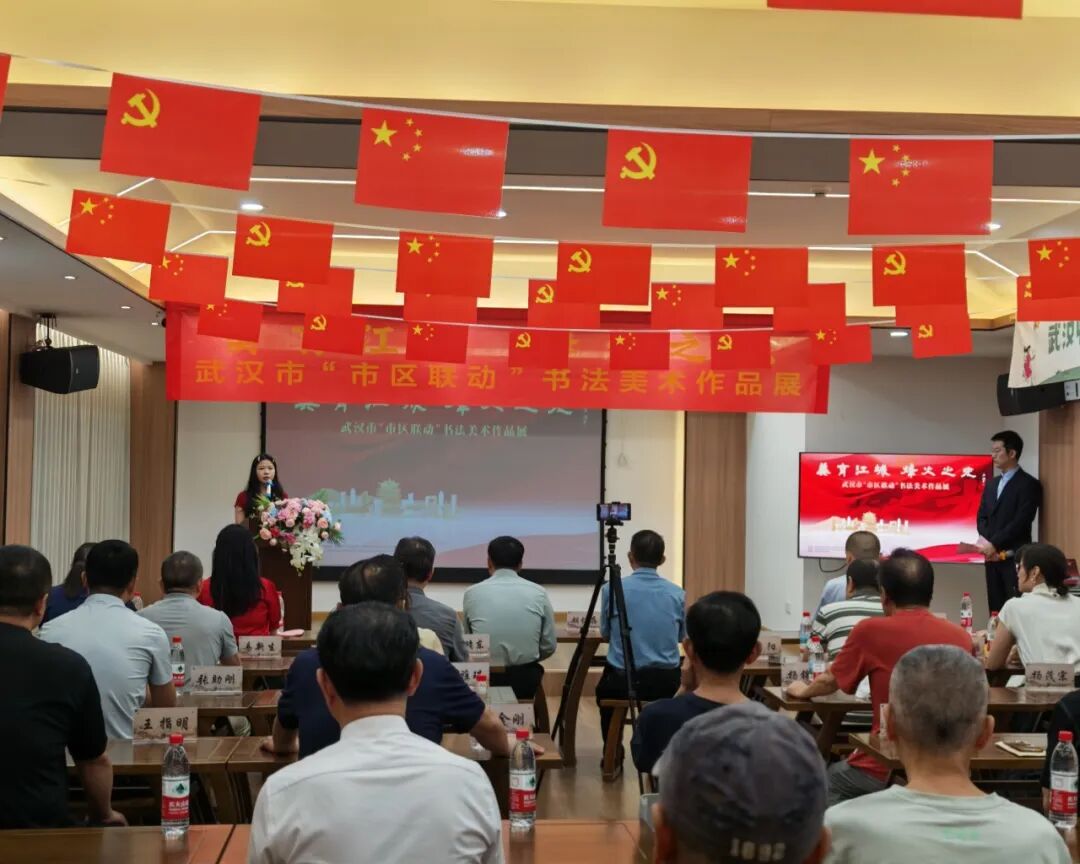 金秋九月,翰墨飘香。9月9日上午,由武汉市群众艺术馆、汉阳区、东西湖区、江夏区、硚口区文化和旅游局联合主办,多家文化单位承办,湖北柏岭科技集团有限公司支持的“美育江城·烽火之光——武汉市‘市区联动’书法美术作品展”在武汉收藏品市场崇仁堂文化驿站隆重开幕。