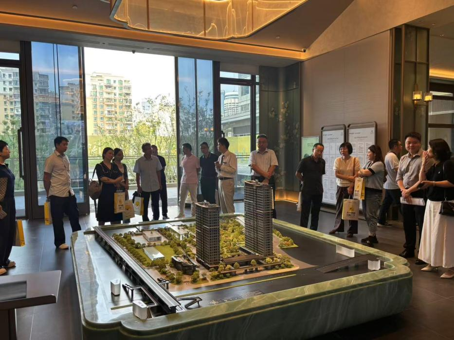座谈环节后,承宁府特邀参会嘉宾参观承宁府营销中心、园林景观及实体样板间。政企代表在移步换景中,共同感受产城融合的高品质空间,探讨宜居宜业环境的共建之道。项目方重点推介了“四代住宅”“高得房率”“约2.5超低容积率”“下沉庭院式会所”等核心亮点。在参观过程中,参会嘉宾就户型创新、社区配套、智慧家居等细节展开交流,尤其对项目融合“东方美学与现代功能”的居住理念表示高度认可。