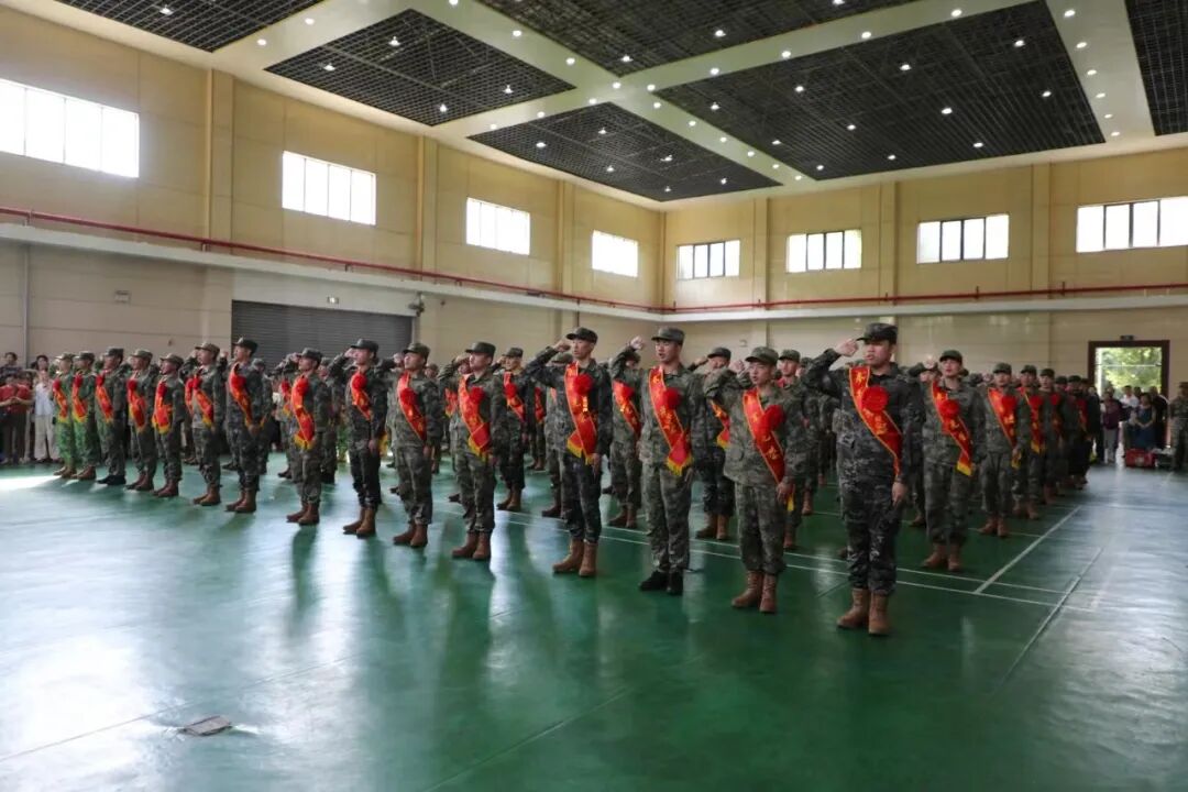 仪式在激昂的中国人民解放军军歌中拉开序幕,家长代表向新兵们发出深情嘱托,希望新兵们能够严守纪律、刻苦训练,学会担当与责任,不负家乡人民的期望。130名新兵进行庄严宣誓,铿锵有力的誓言响彻现场,展现出新兵们献身国防事业的坚定信念和决心。