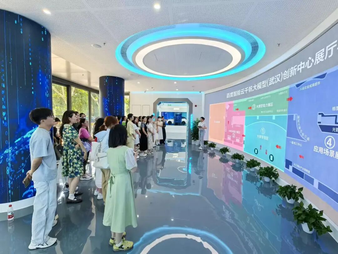 9月17日下午,硚口小学青年教师代表走进百度智能云千帆大模型(武汉)创新中心,围绕人工智能前沿技术、教育领域实践潜力及研学基地建设开展调研,以科技为笔,为硚口教育高质量发展绘就新蓝图。