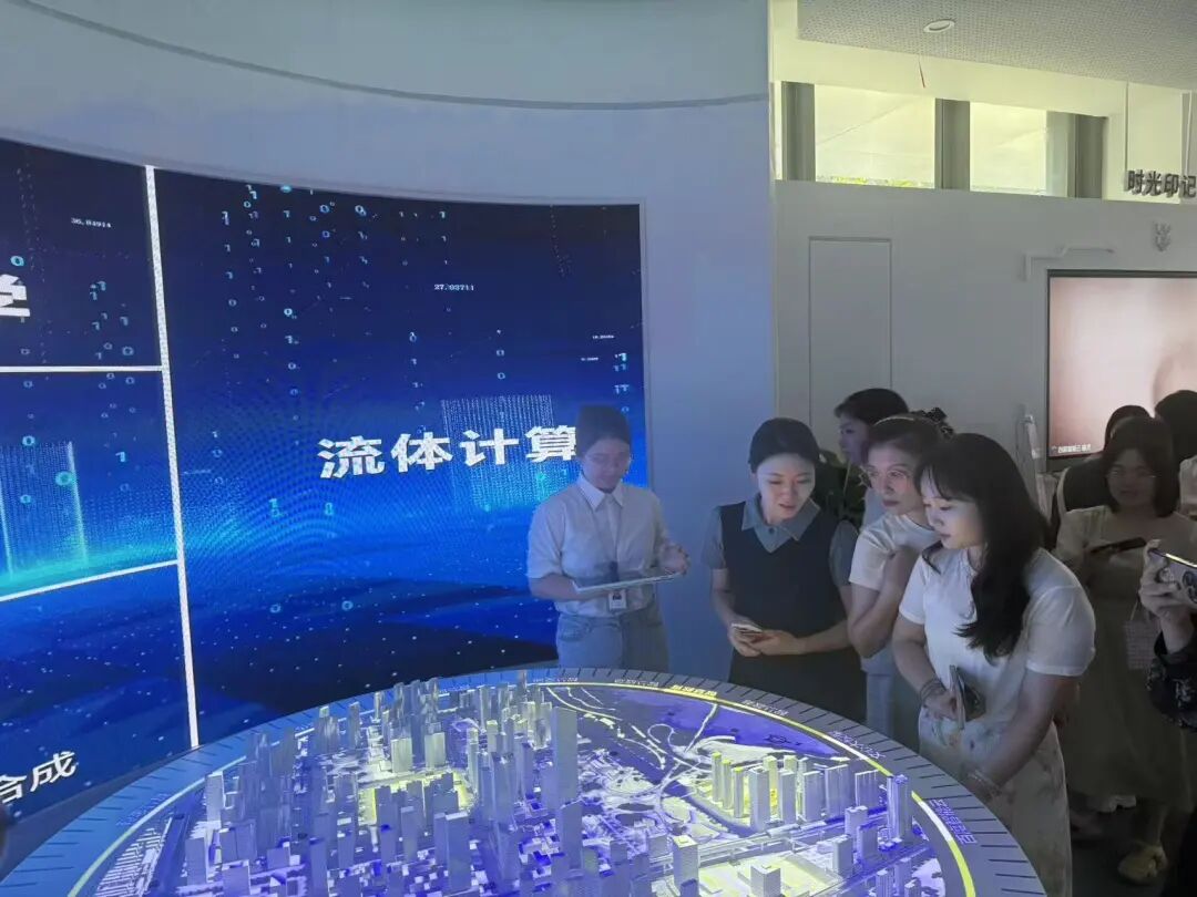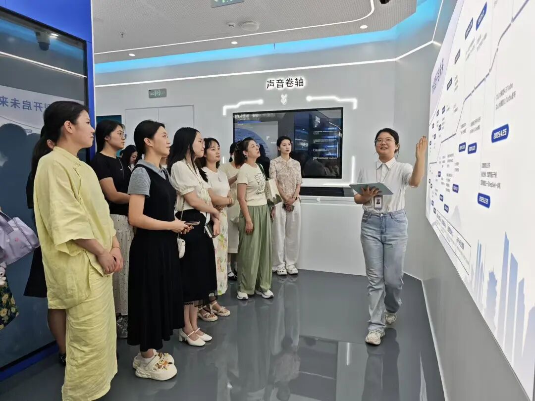 在创新中心一楼展厅,青年教师团队沉浸式体验了AI技术与教育场景的深度融合。从“NLP之书”拆解语言逻辑、辅助教学文本分析,到“无限透镜”展示CV技术在课堂管理、门禁管理中的应用;从“智能创作展示”生成《静夜思》可爱动漫风教学素材,到“格里希交互”“光影西游”通过数字人对话激发学生探索兴趣,每一项技术都让在场青年教师眼前一亮。“这些技术能把抽象的知识变生动,以后带学生研学,就能让他们亲手触摸AI的魅力!”参与调研的青年教师李老师兴奋地说,她当场记录下“声音卷轴”语音转文字、“工业识别”机械臂互动等技术细节,计划融入未来课堂设计。