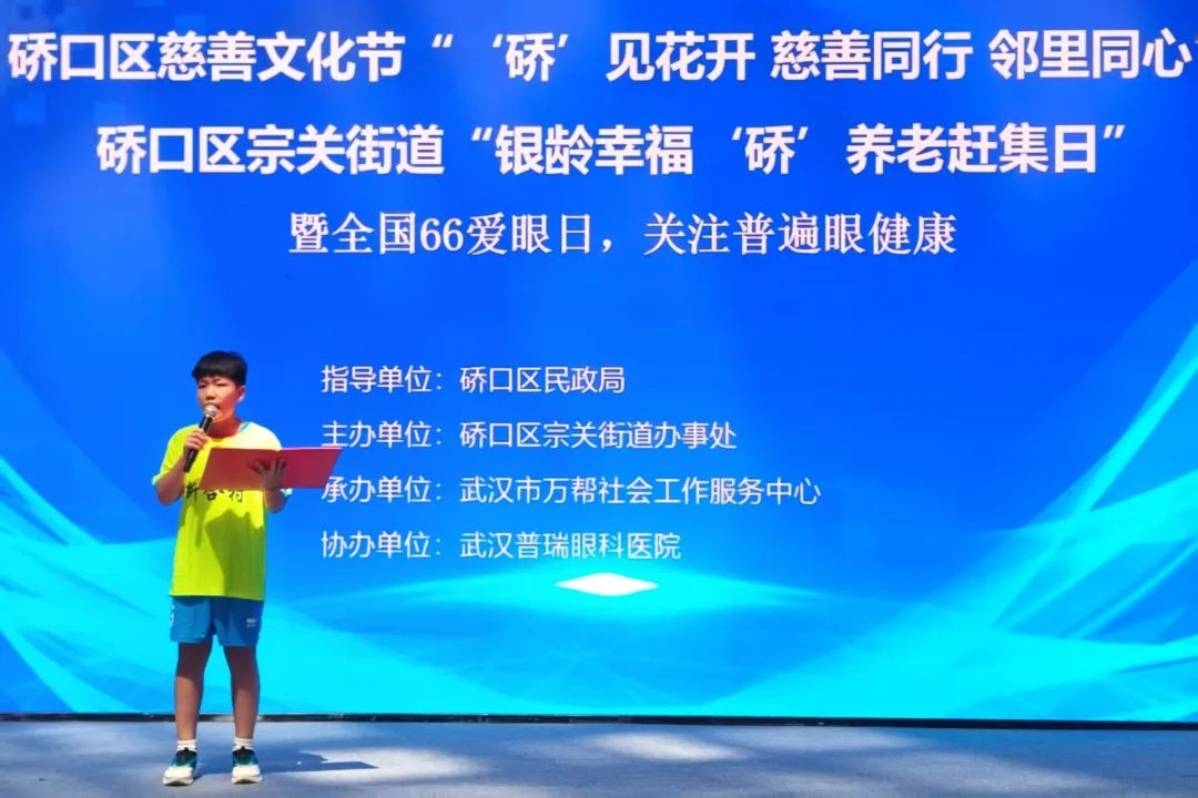 硚口区社区公益文化季启动仪式在宗关街道举办。设置养老服务专区提供政策咨询、健康义诊、免费理发等服务;启动 “梦想书屋”关爱困境儿童项目、“硚见光明”关爱老人眼健康项目;为“爱的回声” 精神障碍患者关爱基金揭牌,同时开展民乐表演、非洲鼓等文艺演出,惠及万余名老年人与精神障碍患者群体。
