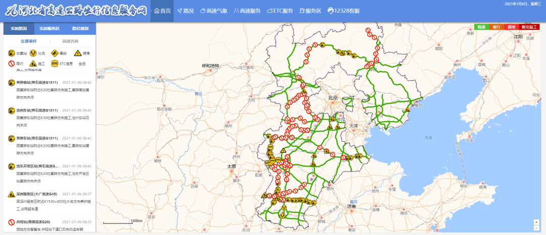 张承高速承德段:因雪,丰宁站、凤山站、南关站、西官营站张家口方向,大滩站双向关闭。