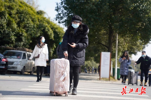 长江网1月7日讯元旦过后,武汉不少高校提前进入“寒假模式”,大学生们开始有序、错峰离校。1月7日,记者探访多所高校及火车站等场所发现,已有大批学生有序离校踏上返乡路。在离校前,各高校普遍温馨提醒和强调,引导学生做好返乡和居家期间疫情防控。
