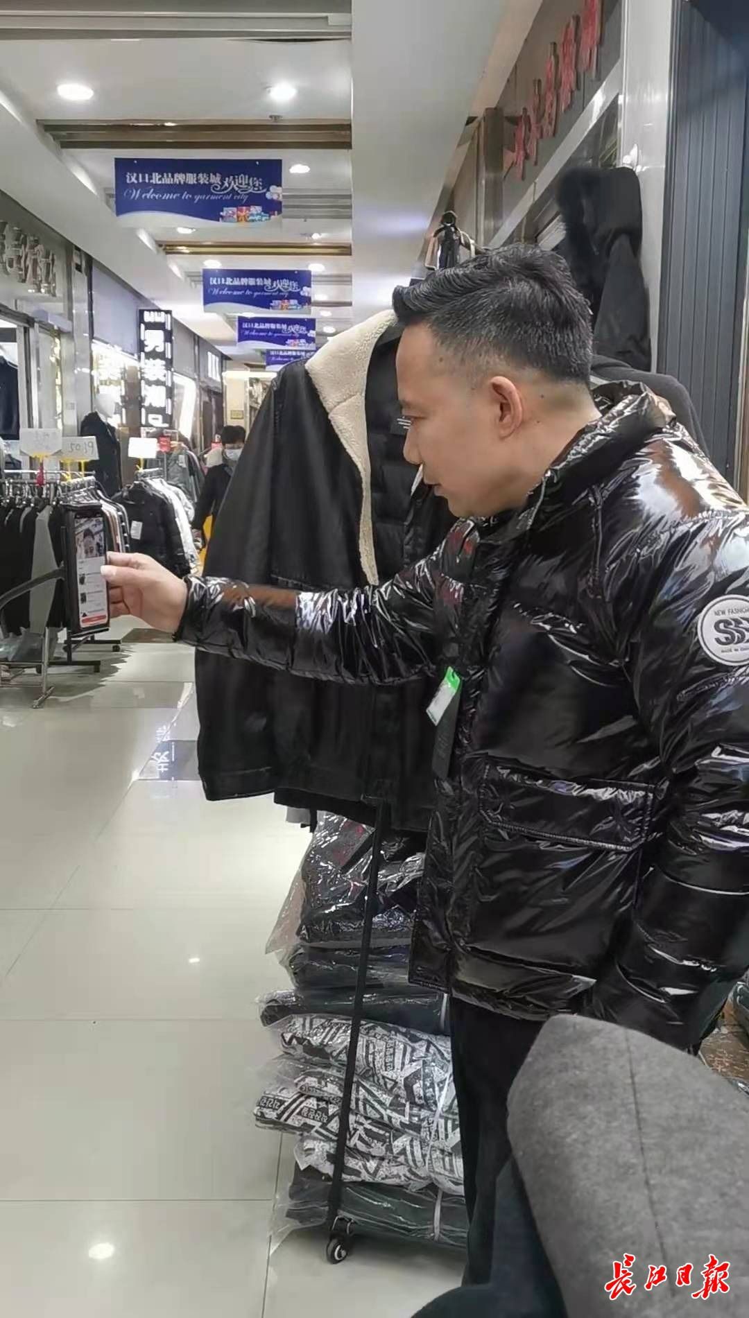 长江网记者在他的店内看到,从毛衣、牛仔裤到呢子大衣、羽绒服,各式男装品类样式不少,价格从100多到800、900元不等。“不少是之前的库存,也有从各地厂家精心挑选的衣服,主要来自福建、江浙一带,也有部分汉派服装。”“裤哥”说,“去年10月份到今年元旦前后,线下生意逐渐开始好转,目前又开始出现一定的疲软,希望在过年之前,把现有的库存清完,回笼资金为年后做准备。”