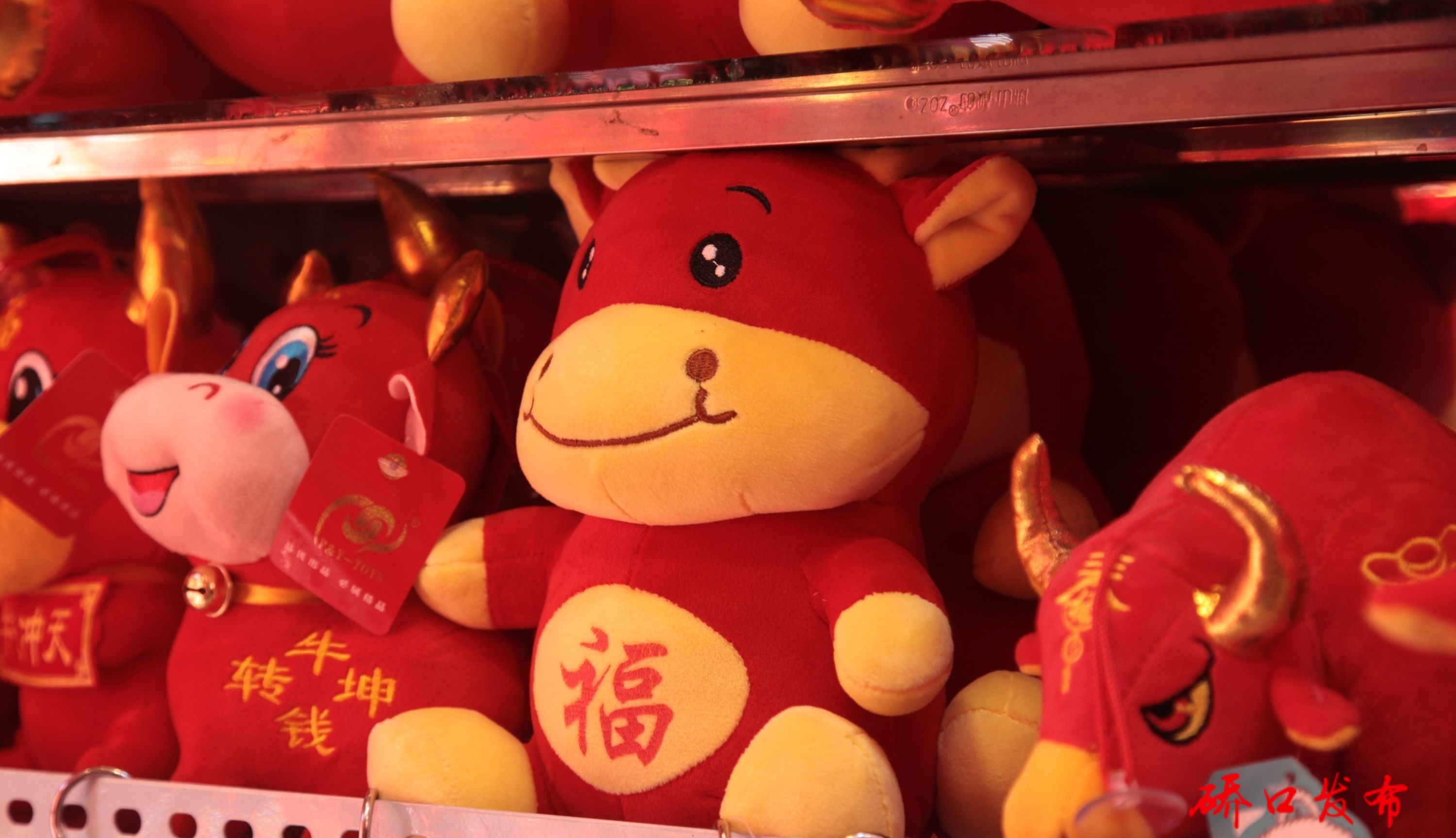 牛年来临,除了卖灯笼、福字、对联这类基础年货之外,店里早就准备了各式各样的新款牛玩偶。