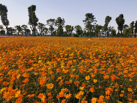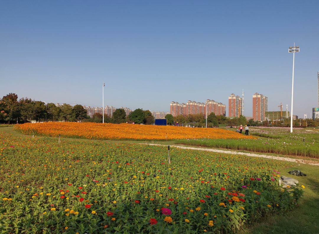 绿化:总籽播5万平方米花田花海,成片成景,成为热门打卡地。