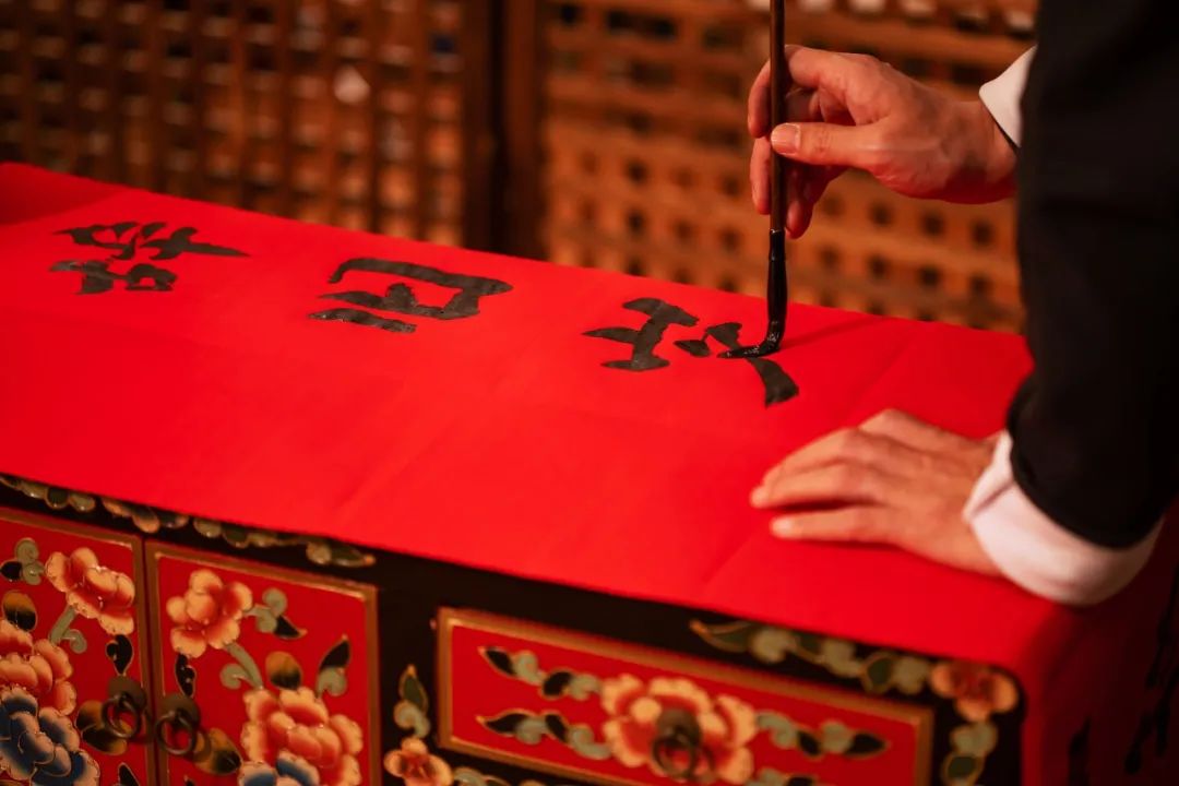 普通的红纸配上黑色的书法
