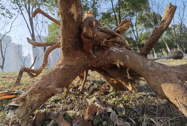 沙湖公园留下枯树桩,为昆虫提供自然住所。