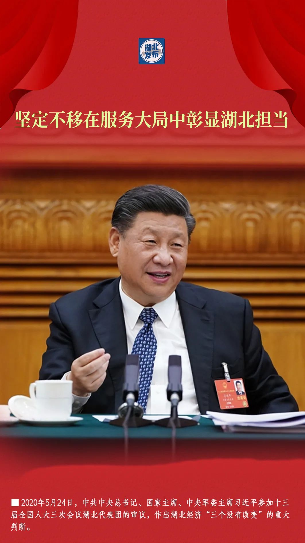 坚定不移在应对变局中展现湖北作为。立足新发展阶段,贯彻新发展理念,构建新发展格局,推进“一主引领、两翼驱动、全域协同”区域发展布局,着力打造国内大循环重要节点和国内国际双循环战略链接,更好满足人民日益增长的美好生活需要。