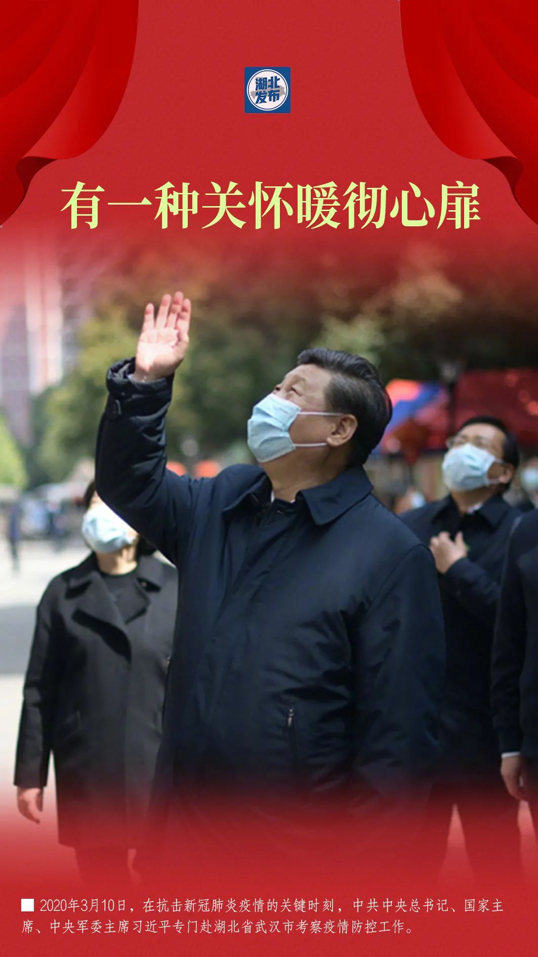 有一种关怀暖彻心扉。习近平总书记时刻牵挂湖北人民的健康安危,大年三十夜不能寐,正月初一再次部署;在疫情防控最吃劲的关口,亲赴我省抗疫最前线,把党中央的深情厚爱传递到每一位荆楚儿女心头。