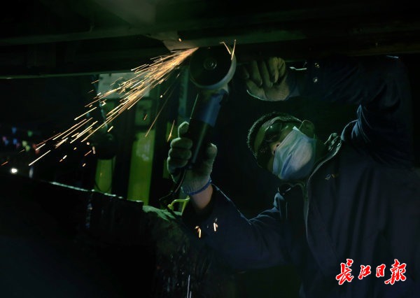 长江网2月17日讯 2月17日大年初六晚上,角磨机打出的火花仿佛绽放的迎春礼花,武汉公交三公司保修分公司古田车间内一片紧张有序的繁忙景象。留在武汉过年的技工师傅们正在轮班对春节期间营运的公交车辆进行例行安检,确保即将到来的返城客流高峰和节后的常态化运营。