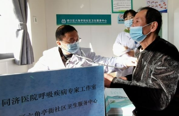2月16日大年初五,中华医学会呼吸分会COPD学组委员、同济医院呼吸与危重症医学科副主任、教授、博士生导师谢俊刚下沉硚口区六角亭街社区卫生服务中心呼吸疾病专家工作室接诊。