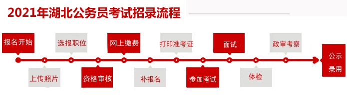 1.提交报考申请。报名时间为2月20日9:00至2月26日17∶00。报考人员应仔细阅读本公告、《湖北省2021年度省市县乡考试录用公务员报考指南》及《湖北省2021年度省市县乡考试录用公务员招考职位表》,登录湖北省人事考试网,填写诚信报考信息,如实并完整注册个人基本信息,上传本人电子照片,选择合适职位提交报考申请。报考人员只可选择一个职位报名(已经报考涉密等线下招考职位的人员不得网上注册报名,如果重复报名缴费则网上报名无效,也不退还报名费),报名与考试时使用的身份证必须一致。2 月20 日至2 月25日,省人事考试院将每天发布一次报名数据,引导考生合理选择职位。