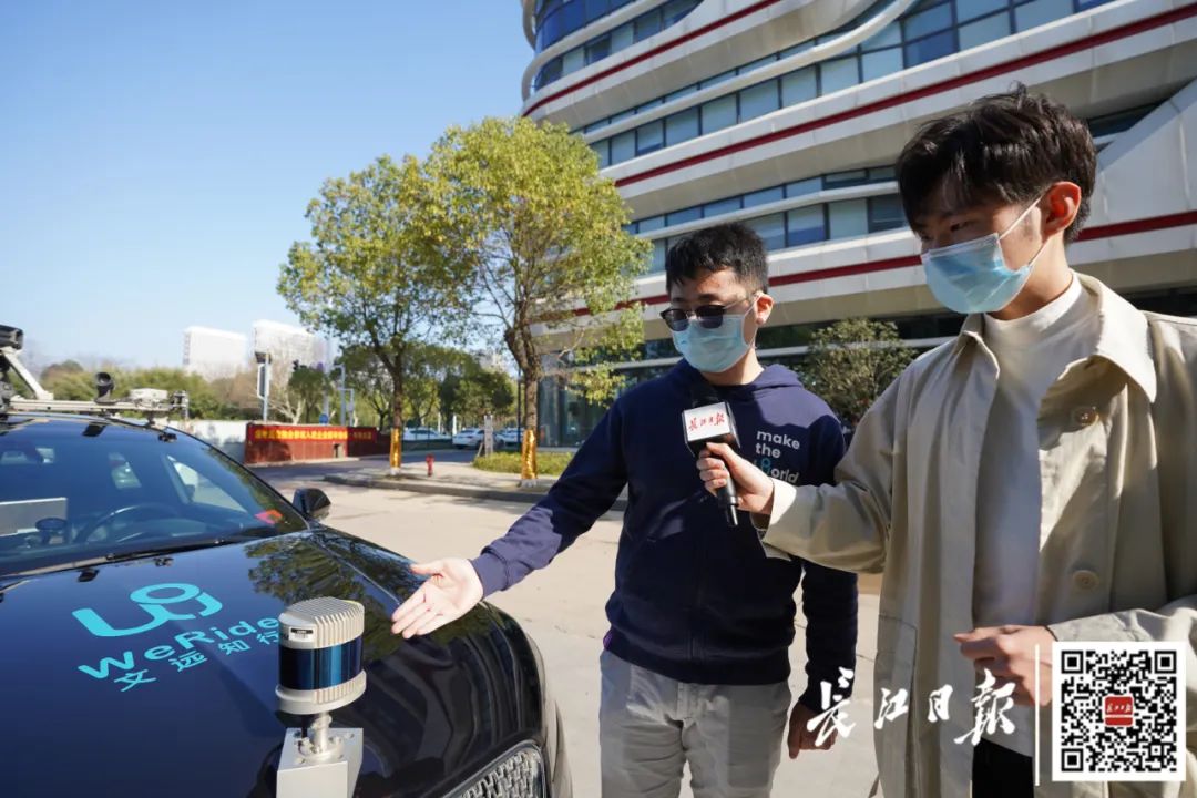 文远知行工程师郜宇飞向长江日报记者介绍自动驾驶出租车。记者肖僖 摄