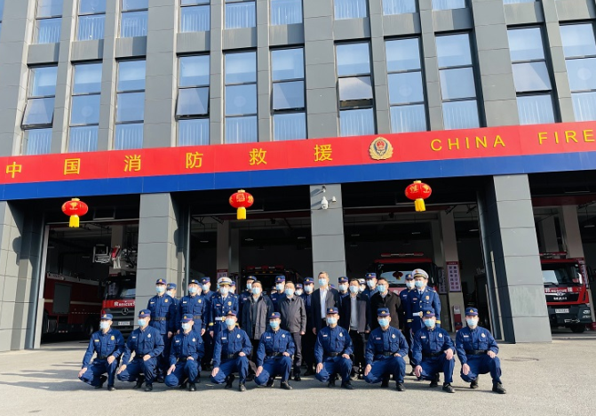 区领导看望慰问消防指战员,致以节日问候和新春祝福。